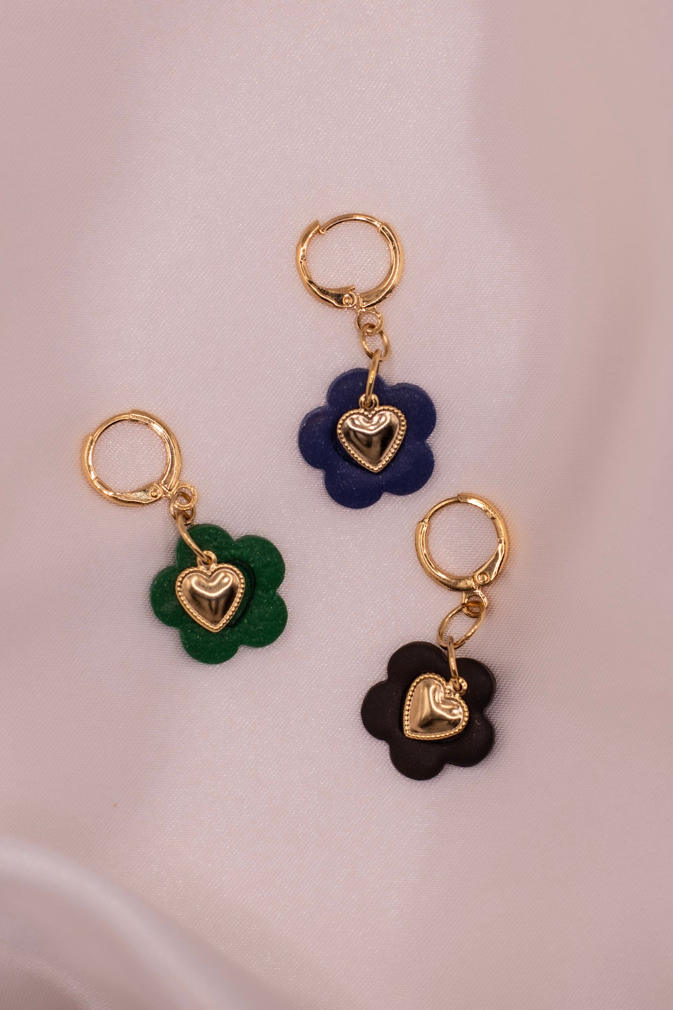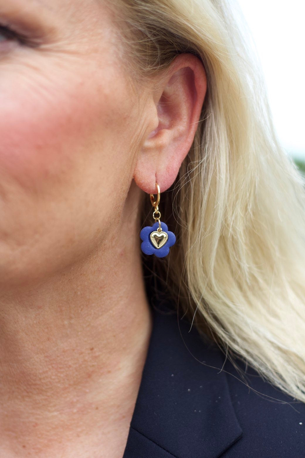 Dette er dobbene du kan bruke til alt og gjennom hele året. Pyntet med hjertecharms i 18K gull. De er festet på nickelfrie huggie- hoops belagt med 18K gull.